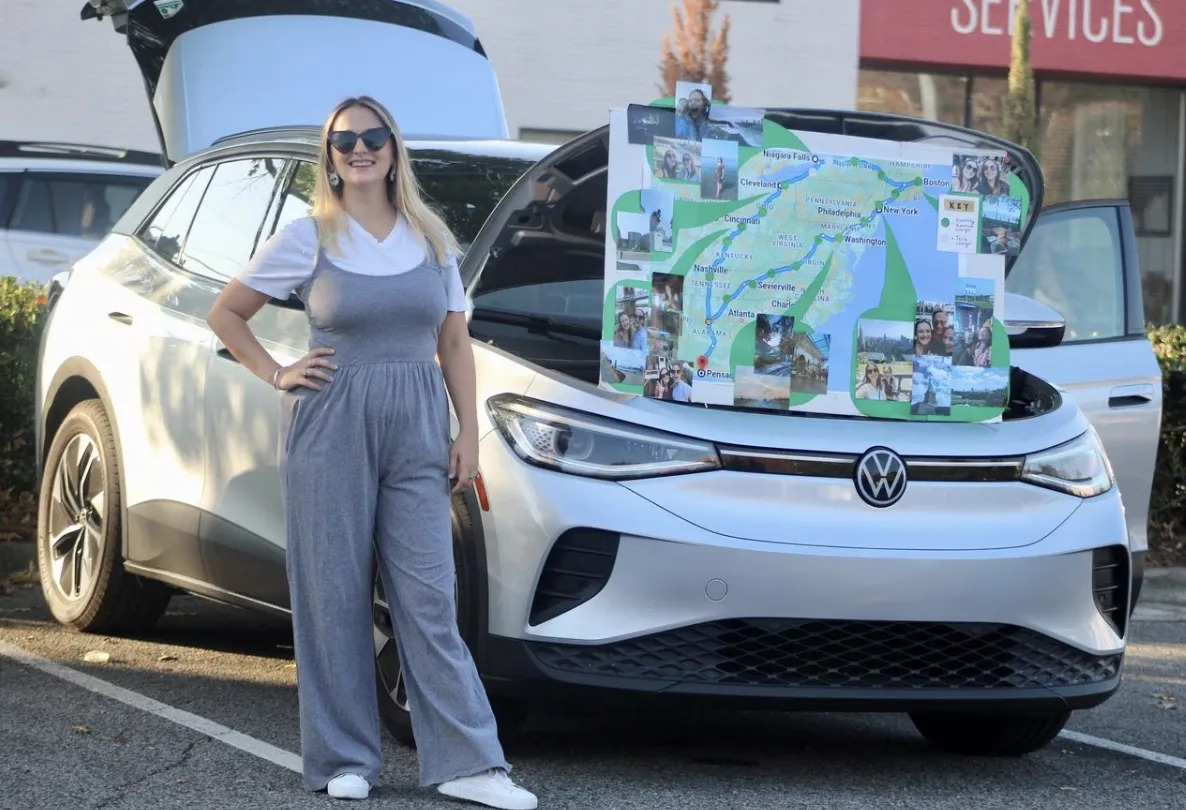 Mary Palmer Rosenau can show easily show the benefits and efficiency of electric vehicles. A map in front of her Volkswagen ID.4 SUV illustrated just how much she can accomplish with her vehicle, a few stops, and a little extra planning.